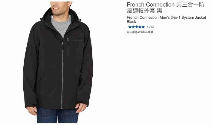 優寶購物《ubao.Tw》特貨品商城,黑貓宅配,取貨付款,購Happy~French Connection 男三合一防風連帽外套 #139857 | Yahoo拍賣