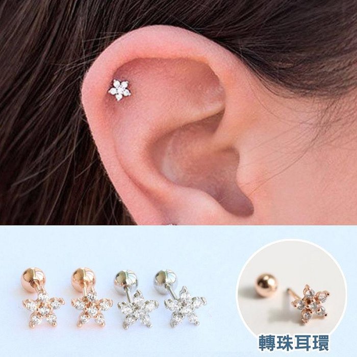 優寶購物《ubao.Tw》特貨品商城,黑貓宅配,取貨付款,轉珠耳環 鎖珠耳環 可愛小花 螺旋耳針 316L 醫療鋼耳針*花漾美人*嚴選 | Yahoo拍賣