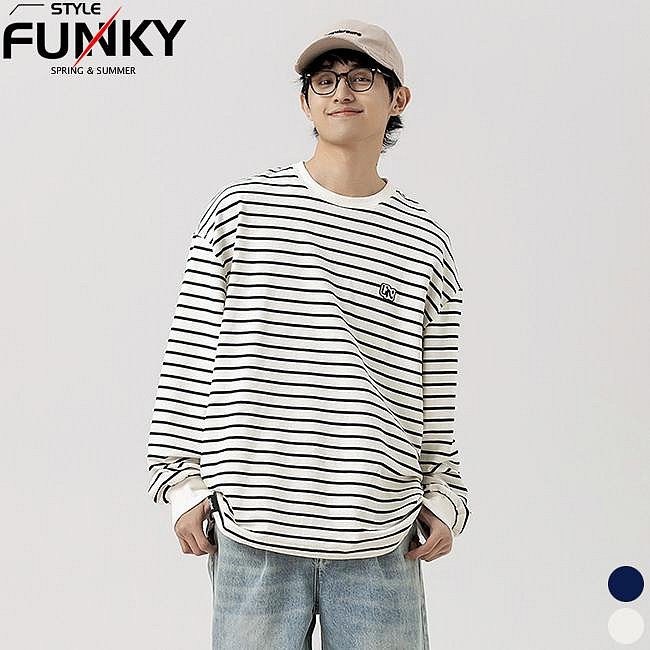 優寶購物《ubao.Tw》特貨品商城,黑貓宅配,取貨付款,☆Funky 小版男裝☆ 獨家預購 春季新品 清新休閒風格 簡約橫條紋長袖T恤 大學T 條紋T 衛衣 寬鬆 落肩 開衩 | Yahoo拍賣