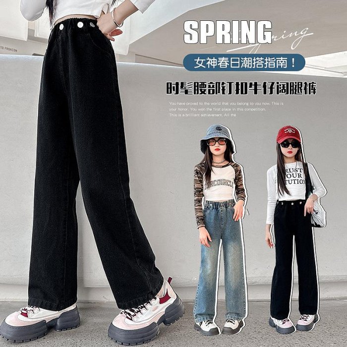 優寶購物《ubao.Tw》特貨品商城,黑貓宅配,取貨付款,小圖藤童裝~~~中大童~~女童春秋牛仔褲2024新款女休閒阔腿長褲(A9150) | Yahoo拍賣