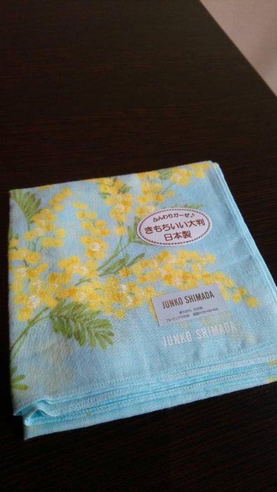 優寶購物《ubao.Tw》特貨品商城,黑貓宅配,取貨付款,JUNKO SHIMADA ♥日本品牌♥ 天空藍素面 拼接黃色花卉 手帕 (日本製) | Yahoo拍賣