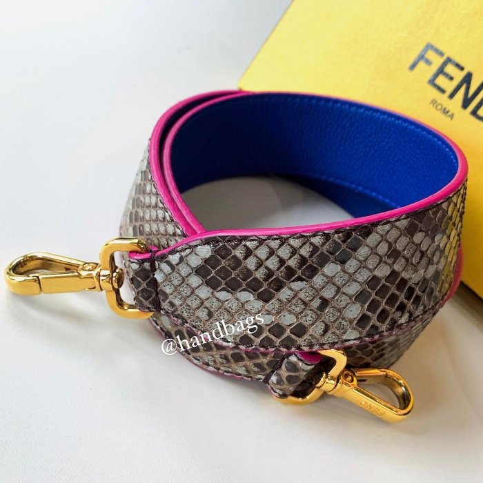優寶購物《ubao.Tw》特貨品商城,黑貓宅配,取貨付款,【翰貝格名牌館】二手真品 FENDI 蛇紋 雙面 藍粉色 金鎖釦 寬版 背帶 現貨LW | Yahoo拍賣