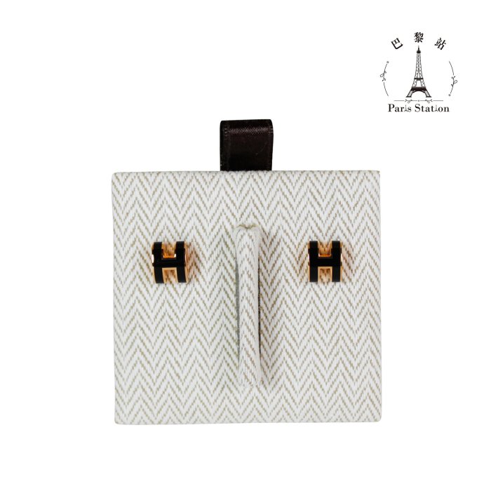 優寶購物《ubao.Tw》特貨品商城,黑貓宅配,取貨付款,【巴黎站二手名牌專賣店】*全新現貨*HERMES 愛馬仕 真品*黑色MINI POP H玫瑰金邊耳環 | Yahoo拍賣