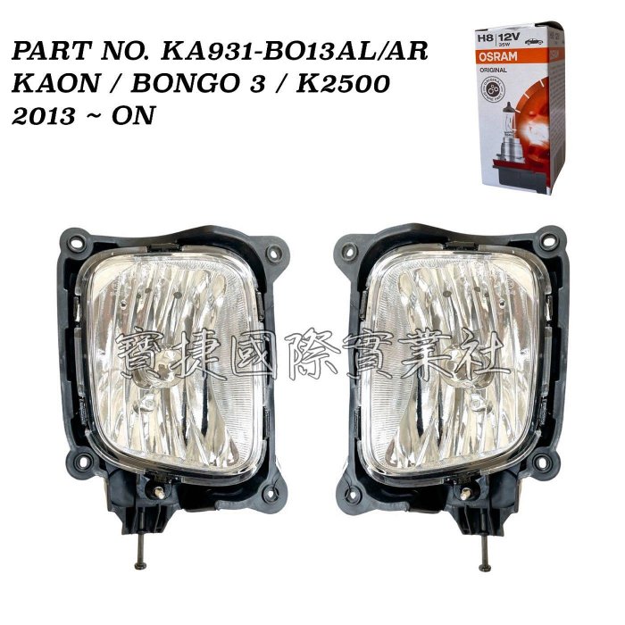 優寶購物《ubao.Tw》特貨品商城,黑貓宅配,取貨付款,(寶捷國際) KIA KAON BONGO 3 K2500 2013 ~ ON 霧燈 L/R 全新 現貨供應 | Yahoo拍賣