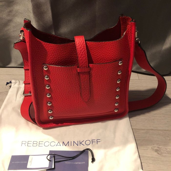 優寶購物《ubao.Tw》特貨品商城,黑貓宅配,取貨付款,美國 REBECCA MINKOFF 專櫃正品 SMALL UNLINED 圓鉚釘 牛皮 肩背包/斜背包 -紅色 | Yahoo拍賣