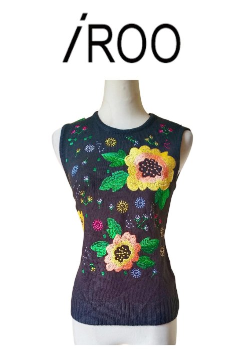 優寶購物《ubao.Tw》特貨品商城,黑貓宅配,取貨付款,都會名牌~【iRoo!】萬紫千紅花朵黑色針FA-5織背心~8888 | Yahoo拍賣