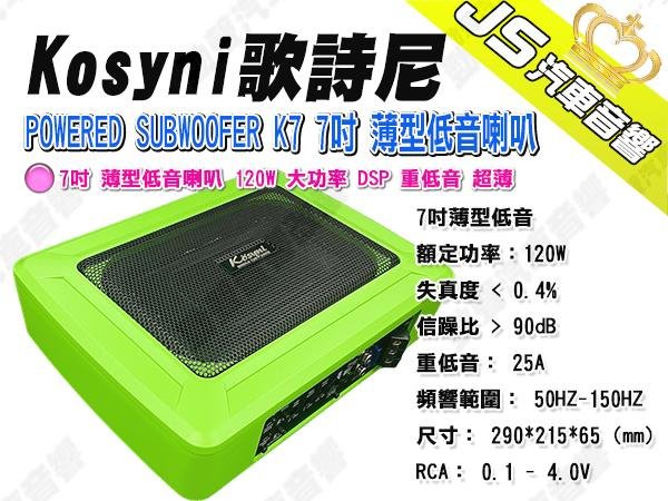 優寶購物《ubao.Tw》特貨品商城,黑貓宅配,取貨付款,勁聲汽車音響 Kosyni 歌詩尼 POWERED SUBWOOFER K7 7吋 薄型低音喇叭 120W 大功率 DSP 重低音 超薄 | Yahoo拍賣