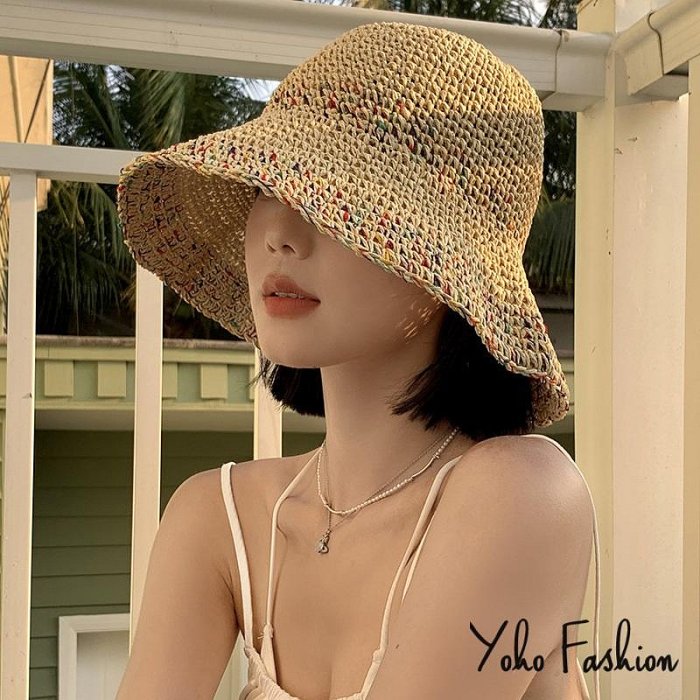 優寶購物《ubao.Tw》特貨品商城,黑貓宅配,取貨付款,YOHO 草編遮陽帽 夏季彩色度假風鏤空防曬草編帽 防曬漁夫帽 草帽 (ZP71483) | Yahoo拍賣