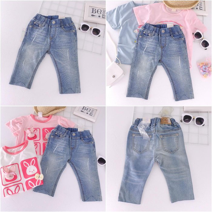 優寶購物《ubao.Tw》特貨品商城,黑貓宅配,取貨付款,○。° 彩色泡泡 °。○ 童裝【貨號H20658】夏。淺藍V口刷色七分牛仔褲 | Yahoo拍賣