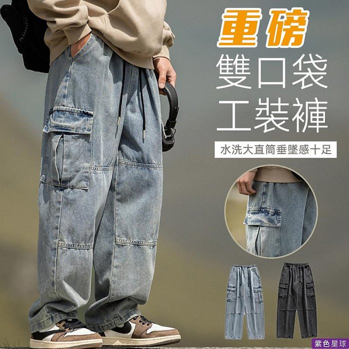 優寶購物《ubao.Tw》特貨品商城,黑貓宅配,取貨付款,【紫色星球】牛仔褲 正韓 男長褲 大直筒褲 休閒長褲 工作長褲【K2151】寬管褲 牛仔長褲 鬆緊褲 大尺碼 M-3XL | Yahoo拍賣