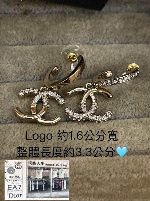 優寶購物《ubao.Tw》特貨品商城,黑貓宅配,取貨付款,CHANEL 香奈兒 耳勾式 淡金色 上下不對稱 人造鑽石 二手 造形 耳環 | Yahoo拍賣