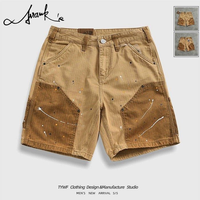 優寶購物《ubao.Tw》特貨品商城,黑貓宅配,取貨付款,FRANK'S大阪直送-2款 潑漆 拼接 美式 挺版 工作短褲 寬鬆 復古 五分褲 短褲 口袋 耐磨 中性 輕便好搭 | Yahoo拍賣
