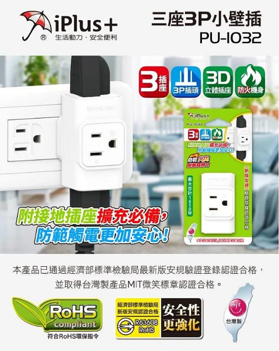優寶購物《ubao.Tw》特貨品商城,黑貓宅配,取貨付款,台灣製 保護傘 PU-1032 3P立體3座分接插座 插頭轉接 轉向插頭 壁插 三孔插座 插座轉接頭 插座 插頭 | Yahoo拍賣