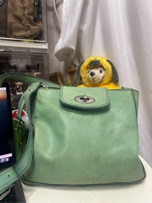 優寶購物《ubao.Tw》特貨品商城,黑貓宅配,取貨付款,含運,商品需要自行染色#FOSSIL草綠色牛皮斜背包#四角沒破 | Yahoo拍賣
