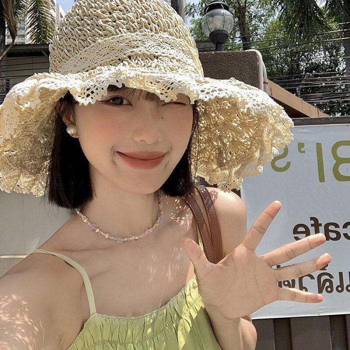 優寶購物《ubao.Tw》特貨品商城,黑貓宅配,取貨付款,💕預購💕MeiPing家鏤空飄帶草帽女夏季海邊度假草編遮陽防曬帽日繫沙灘甜美太陽帽 | Yahoo拍賣