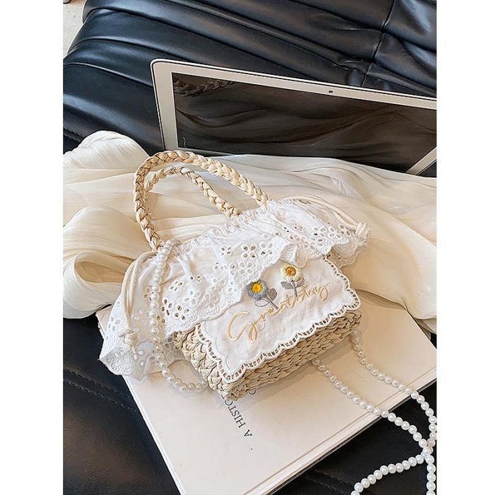 優寶購物《ubao.Tw》特貨品商城,黑貓宅配,取貨付款,現貨 編織包 森系田園風編織包包夏天可愛珍珠斜挎包度假風沙灘蕾絲草編包 | Yahoo拍賣