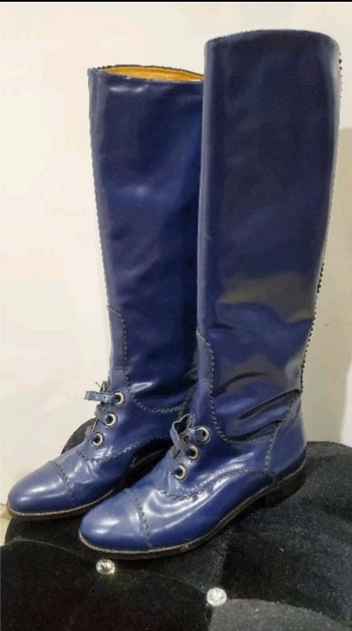 優寶購物《ubao.Tw》特貨品商城,黑貓宅配,取貨付款,CARVEN精品義大利製全真皮深藍漆皮長靴 | Yahoo拍賣