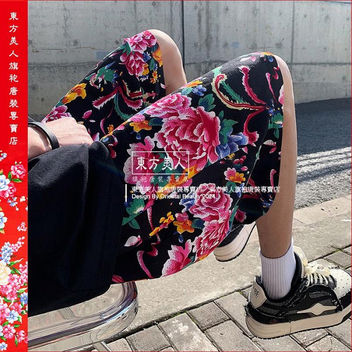 優寶購物《ubao.Tw》特貨品商城,黑貓宅配,取貨付款,【台灣出貨】 棉麻鬆緊男短褲 夏款休閒涼爽透氣 國潮民族風東北大花 /超低價359元💮DK2008 黑色💮東方美人 | Yahoo拍賣