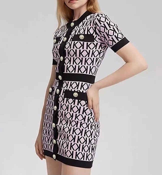 優寶購物《ubao.Tw》特貨品商城,黑貓宅配,取貨付款,Karl Lagerfeld 白色 粉色 logo提花修身短袖冰絲針織洋裝 1198元 | Yahoo拍賣