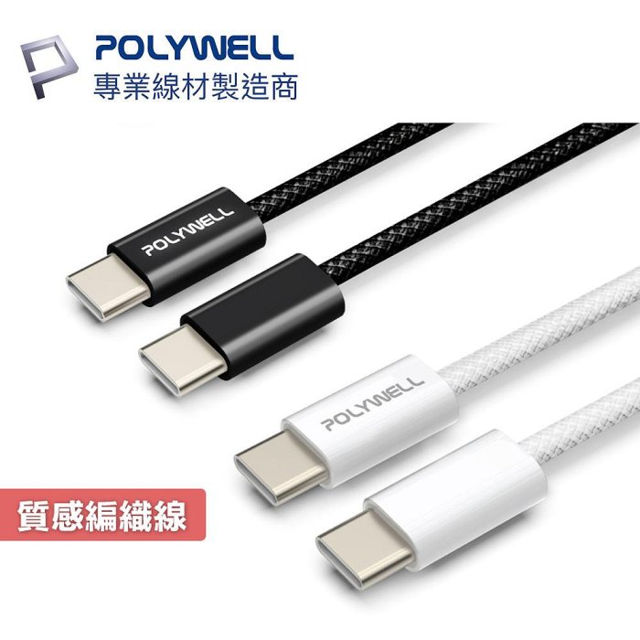 優寶購物《ubao.Tw》特貨品商城,黑貓宅配,取貨付款,POLYWELL USB-C to C 3A 60W 傳輸線 Type-C PD 編織 快充線 寶利威爾 | Yahoo拍賣