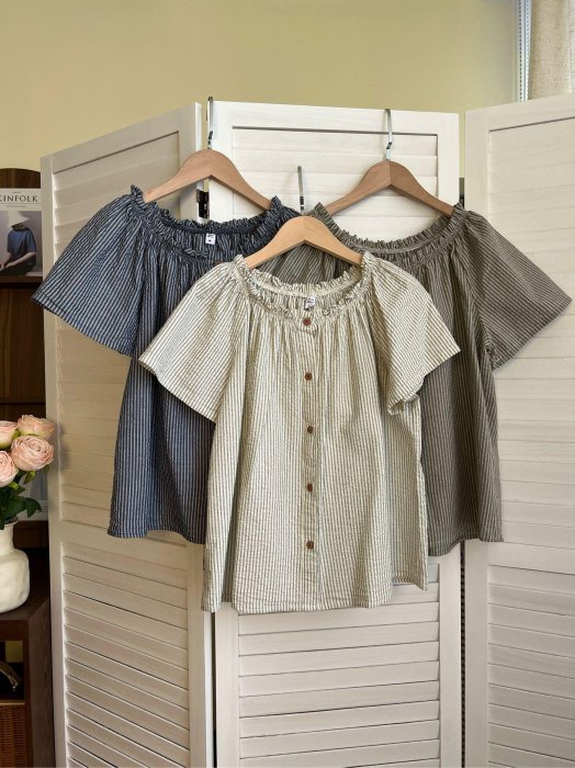 優寶購物《ubao.Tw》特貨品商城,黑貓宅配,取貨付款,森系 🍬文藝清新泡泡肌理感條紋小衫( 3色 ) | Yahoo拍賣