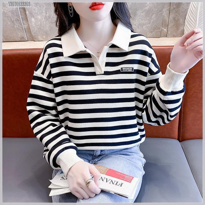 優寶購物《ubao.Tw》特貨品商城,黑貓宅配,取貨付款,女生衣服2024秋季新款韓潮版設計感小眾寬松衛衣女polo領條紋上衣百搭休閒通勤全新款女裝女款服飾 | Yahoo拍賣