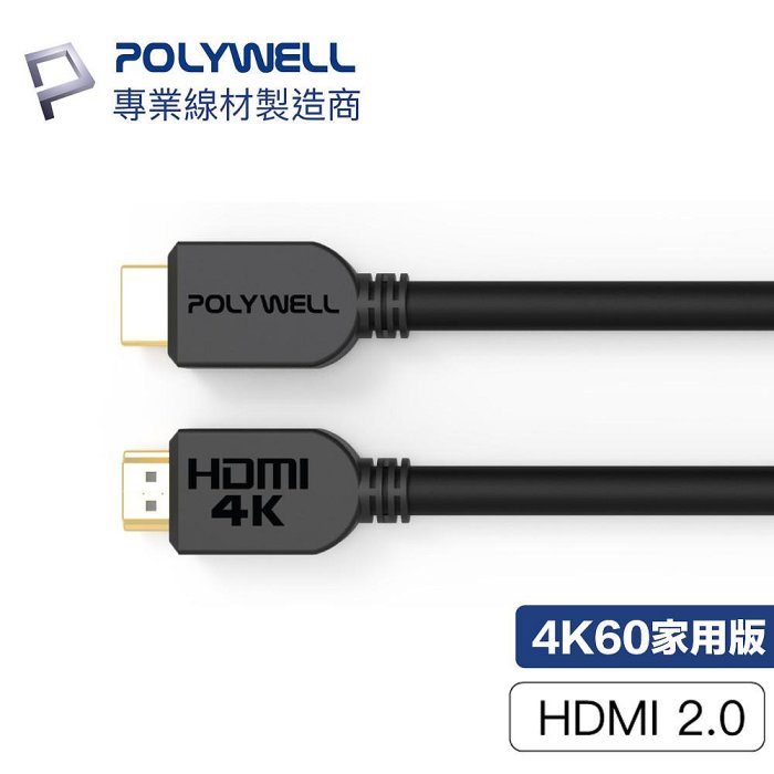 優寶購物《ubao.Tw》特貨品商城,黑貓宅配,取貨付款,POLYWELL HDMI線 2.0版 4K 60Hz UHD HDMI 家用版 傳輸線 工程線 寶利威爾 影音傳輸線 | Yahoo拍賣
