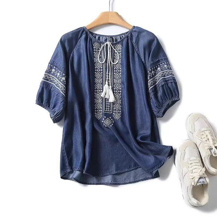 優寶購物《ubao.Tw》特貨品商城,黑貓宅配,取貨付款,BEFE時尚精品 文藝復古 刺繡精致 寬鬆天絲牛仔 襯衫A06122 | Yahoo拍賣