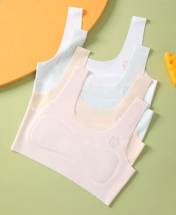 優寶購物《ubao.Tw》特貨品商城,黑貓宅配,取貨付款,1005兔子柔軟冰絲無痕第一階段內衣4件組.下胸圍56-64CM成長型內衣.發育期內衣 | Yahoo拍賣