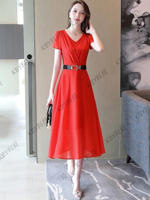 優寶購物《ubao.Tw》特貨品商城,黑貓宅配,取貨付款,紅色雪紡連衣裙2024新款女夏季端莊大氣宴會禮服裙氣質顯瘦茶歇裙-kby科貝 | Yahoo拍賣