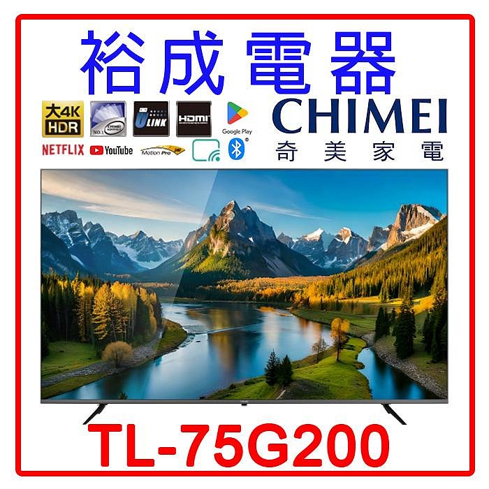 優寶購物《ubao.Tw》特貨品商城,黑貓宅配,取貨付款,【裕成電器‧詢價享優惠】奇美 75吋 4K聯網 液晶顯示器TL75G200(無視訊盒) 另售 TH-49JX750W國際牌 | Yahoo拍賣