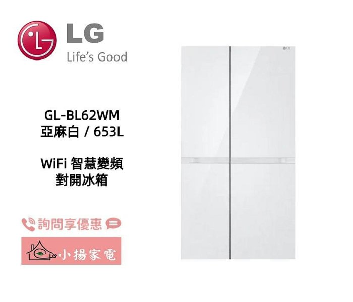 優寶購物《ubao.Tw》特貨品商城,黑貓宅配,取貨付款,【小揚家電】LG GL-BL62WM (653L) 智慧變頻對開冰箱 亞麻白 另售 GR-QPLC82BS 詢問享優惠 | Yahoo拍賣