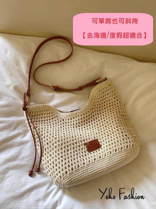 優寶購物《ubao.Tw》特貨品商城,黑貓宅配,取貨付款,[現貨]YOHO 度假草編包 實拍夏季大容量海邊度假純棉針織草編包 單肩包 斜挎包 (ALS4127) | Yahoo拍賣