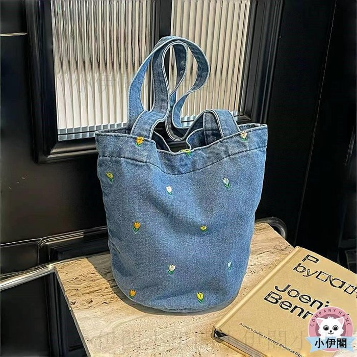 優寶購物《ubao.Tw》特貨品商城,黑貓宅配,取貨付款,小伊閣=夏季大容量帆布水桶包女刺繡牛仔布手拎通勤單肩包百搭美式托特包=側包*肩包*手提包*水桶包*斜背包*手機包 | Yahoo拍賣