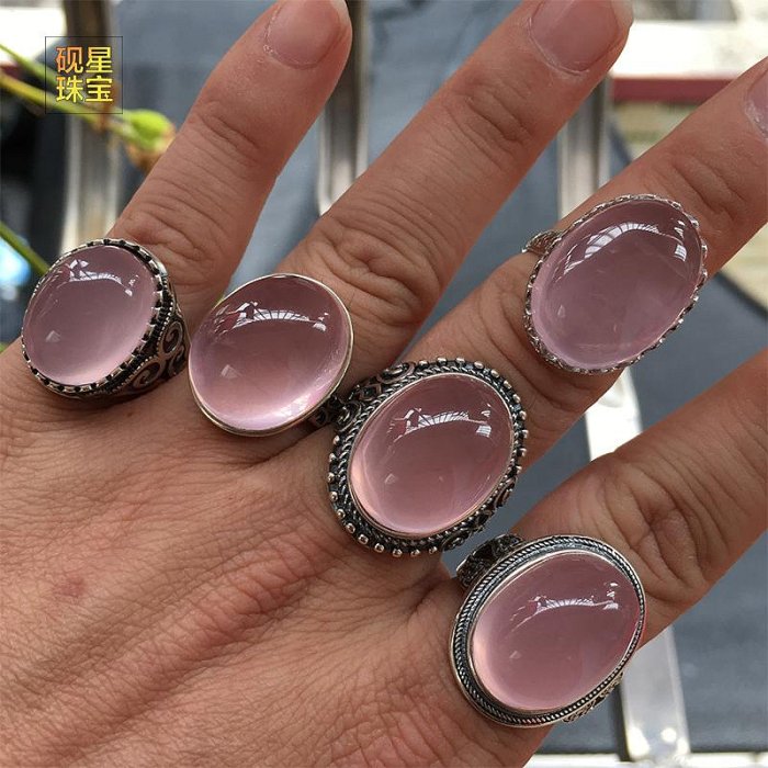 優寶購物《ubao.Tw》特貨品商城,黑貓宅配,取貨付款,天然水晶粉晶戒指鑲嵌S925純銀復古一物一圖透亮輕奢禮品收藏飾品 | Yahoo拍賣