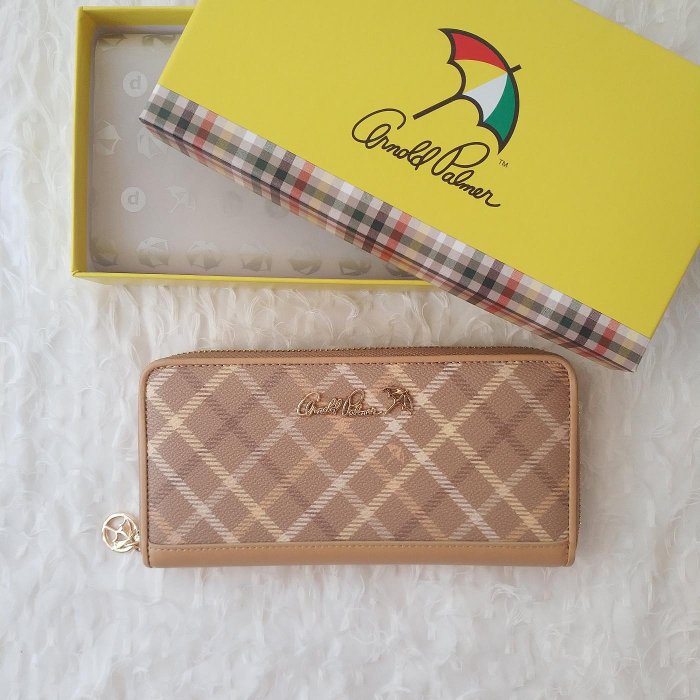優寶購物《ubao.Tw》特貨品商城,黑貓宅配,取貨付款,【米倉】二手專櫃正品Arnold Palmer防刮格紋拉鍊長夾M字型錢包皮夾手拿包卡其色裸色系優雅氣質款 | Yahoo拍賣