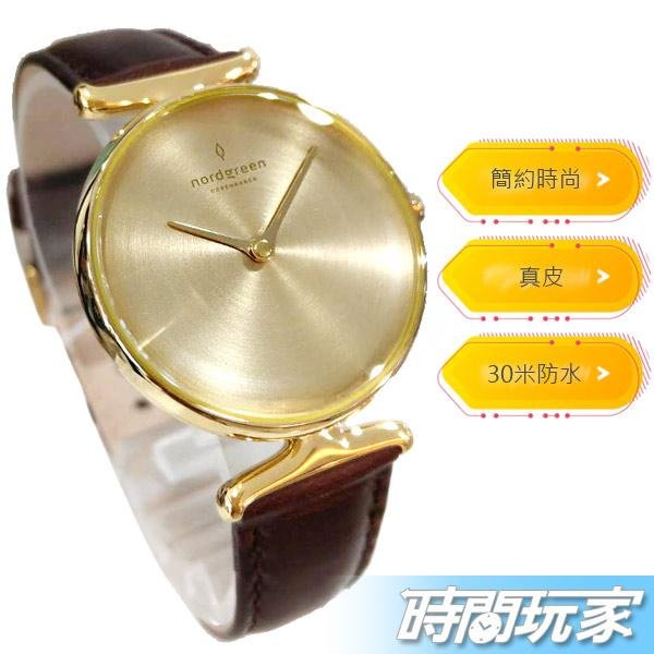 優寶購物《ubao.Tw》特貨品商城,黑貓宅配,取貨付款,nordgreen 北歐 UN32GOLEBRBM 獨特 金色 真皮 咖啡色 女錶【時間玩家】 | Yahoo拍賣