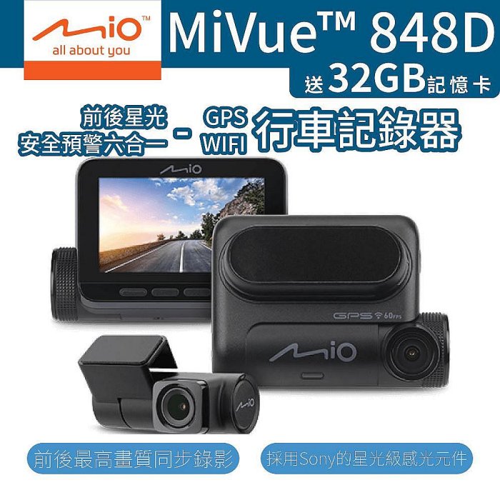 優寶購物《ubao.Tw》特貨品商城,黑貓宅配,取貨付款,Mio MiVue 848D 行車記錄器 前後雙鏡 848+A60 [贈32G記憶卡] WiFi GPS 動態區間測速(W55-0119) | Yahoo拍賣