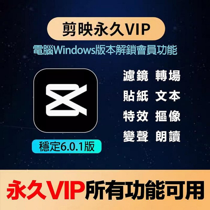 優寶購物《ubao.Tw》特貨品商城,黑貓宅配,取貨付款,【剪映VIP永久電腦版】Capcut 6.0.1 專業版 ,VIP會員一鍵啟動,全素材功能都可用!支持Windows系統 | Yahoo拍賣