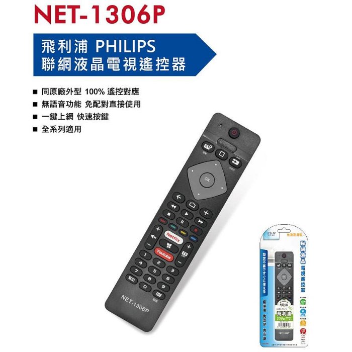 優寶購物《ubao.Tw》特貨品商城,黑貓宅配,取貨付款,全新PHILIPS飛利浦聯網液晶電視遙控器副廠NET-1306P適用PFH、PHH、PUH系列 814 | Yahoo拍賣