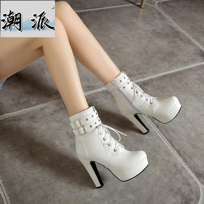 優寶購物《ubao.Tw》特貨品商城,黑貓宅配,取貨付款,大尺碼女鞋 小尺碼女鞋 訂製女鞋 鞋子秋冬馬丁靴粗跟短靴超高跟11CM女靴防水臺系帶拉鏈47 48 49女 | Yahoo拍賣