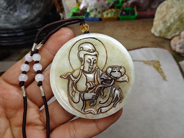優寶購物《ubao.Tw》特貨品商城,黑貓宅配,取貨付款,《藍晶寶石》→〈雕刻項鍊系列〉→天然清透和闐玉精雕〈觀音〉→Z1527 | Yahoo拍賣