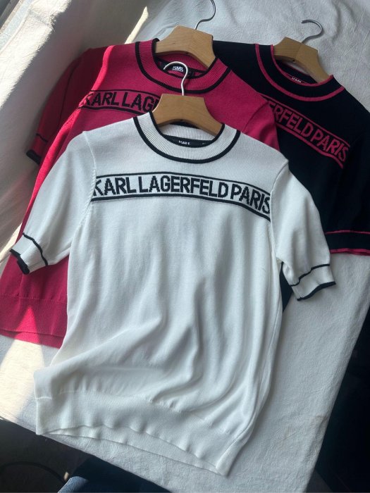 優寶購物《ubao.Tw》特貨品商城,黑貓宅配,取貨付款,Karl Lagerfeld 黑 紅 白 logo提花薄款圓領短袖針織衫 698元 | Yahoo拍賣