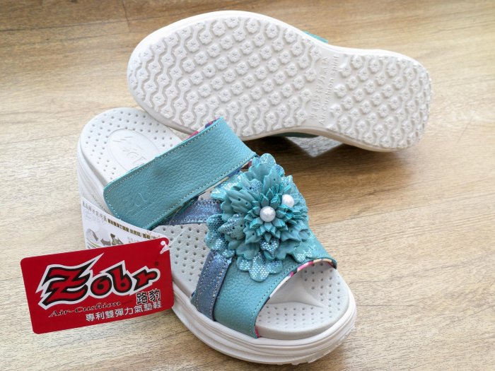 優寶購物《ubao.Tw》特貨品商城,黑貓宅配,取貨付款,[風信子鞋坊]路豹Zobr 藍綠牡丹皮革大花飾 Q彈乳膠氣墊拖鞋 | Yahoo拍賣