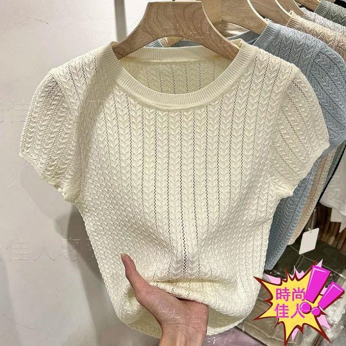 優寶購物《ubao.Tw》特貨品商城,黑貓宅配,取貨付款,時尚佳人=短袖t恤女夏季新款修身洋氣高級感針織衫圓領短款別致上衣ins=上衣/短t/打底衫/一字領t/雪紡/襯衫/蕾絲 | Yahoo拍賣