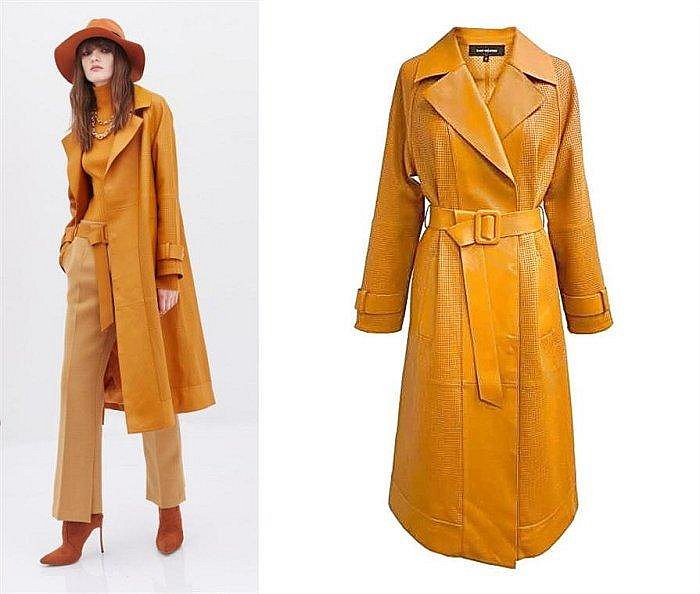 優寶購物《ubao.Tw》特貨品商城,黑貓宅配,取貨付款,※funnyy_lee※ KAO MEIFEN 高美芬 秋冬 全新 桔黃色/黑色 細小洞 長版真皮外套 | Yahoo拍賣