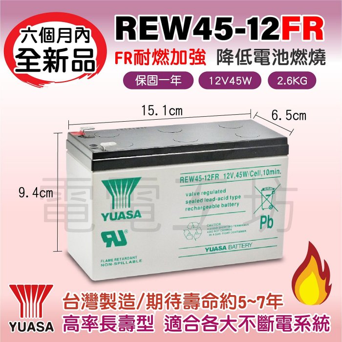 優寶購物《ubao.Tw》特貨品商城,黑貓宅配,取貨付款,電電工坊 全新 湯淺電池 REW45-12FR 12V45W 耐燃加強 高率深循環 UPS不斷電系統 太陽能 小馬達 | Yahoo拍賣
