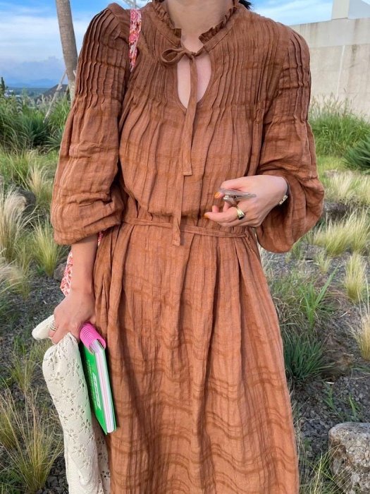 優寶購物《ubao.Tw》特貨品商城,黑貓宅配,取貨付款,立領🌸 鏤空繫帶褶皺長袖連身裙(3色) | Yahoo拍賣