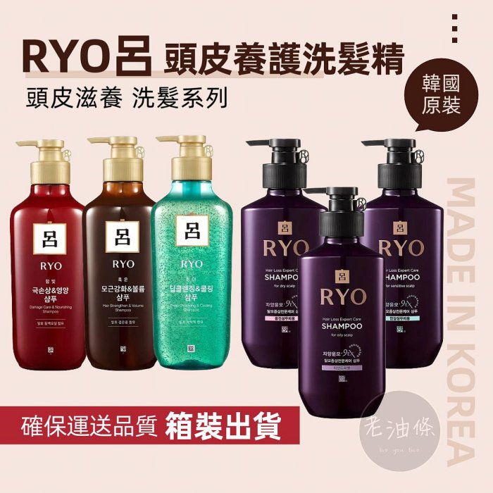 優寶購物《ubao.Tw》特貨品商城,黑貓宅配,取貨付款,【老油條】韓國 Ryo 呂 洗髮精 9EX 全新加量版 箱裝出貨 頭皮滋養系列 洗髮精 新包裝 | Yahoo拍賣