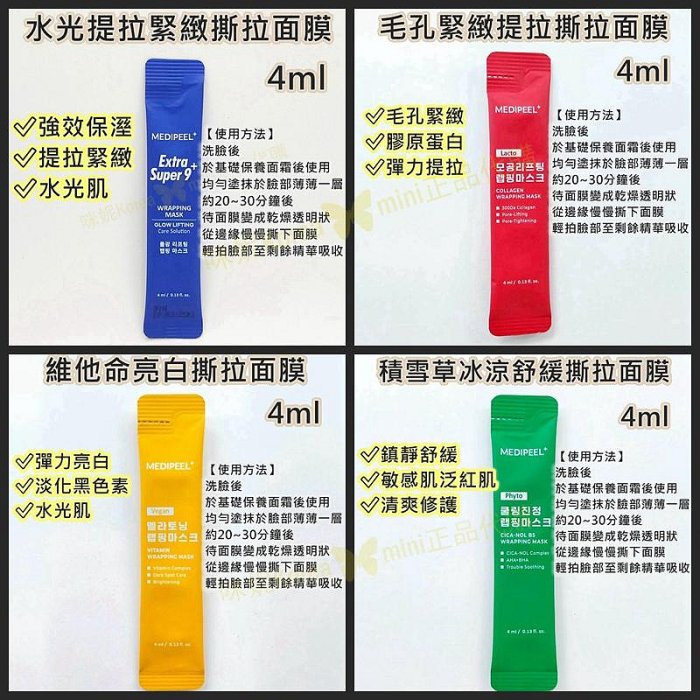 優寶購物《ubao.Tw》特貨品商城,黑貓宅配,取貨付款,mini♥️咪妮♥️MEDIPEEL 美蒂菲 水光提拉緊緻撕拉面膜 4ml Super9 水光肌 毛孔 亮白 積雪草 | Yahoo拍賣